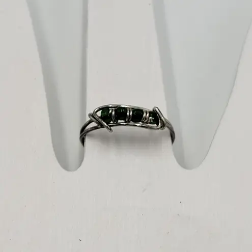 Product Description: Measurements: US Size 6 UK Size M - Condition: Excellent - Silver Tone - Wire Style Ring - Green Beads - Birth Stone Ring - Handmade - Womens Jewelry - Color: Green/Silver Thanks for shopping with me today! I ship on orders received by 3pm each day. Most items are lovingly used and therefore show appropriate signs of wear. I do my best to make note of any irregularities with *. Please feel free to inquire.