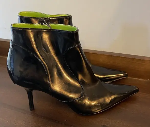 Steve Madden “Clash” Black Patent Ankle Booties Pointed Lime Interior Women’s 7.