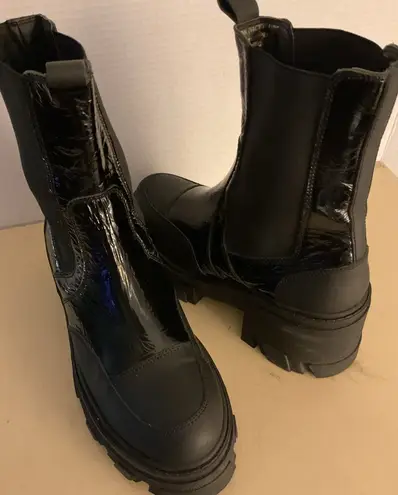 Chic black platform boots with a sleek design. Perfect for elevating any outfit. Good Condition Ste... Show more