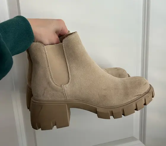 Beige suede platform boots from Steven Madden. So comfortable and no issues i just don’t wear them.... Show more