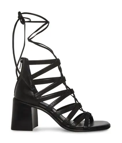 STEVE MADDEN Beautiful black leather gladiator block heel sandals with ties. Size 8 Heel 3” 90s vibe... Show more