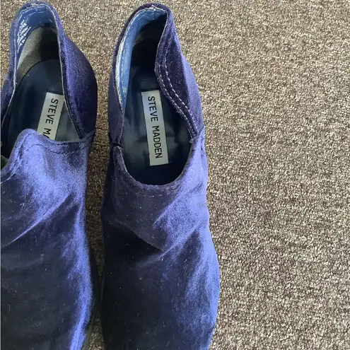 Cute, pretty dressy velvet ankle booties in dark blue (room light made them look kinda purplish) to... Show more