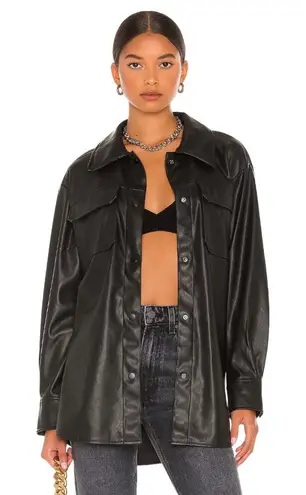 Faux Good Measure Jacket is a vegan leather shirt jacket with snaps and patch chest pockets. Front... Show more