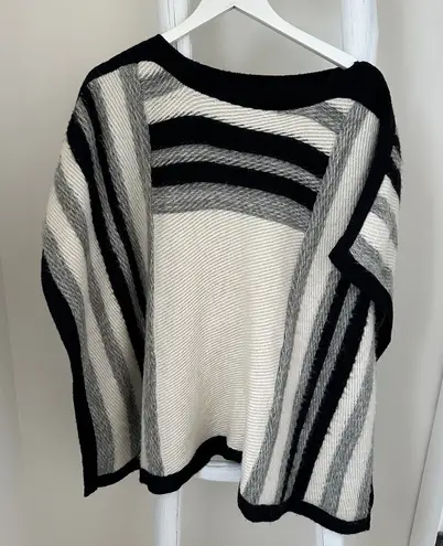 Elegant cream poncho with black and grey stripes. Perfect for layering. •no armholes. Pullover head... Show more
