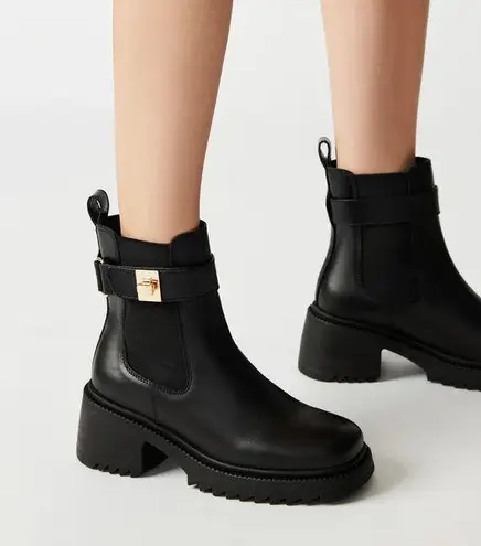 Never worn without box Size 8.5 A buckled ankle strap elevates a rich leather Chelsea boot lifted b... Show more