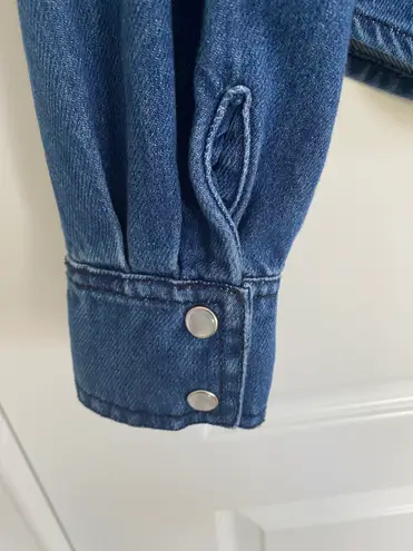 Steve Madden CHARLEY TOP BLUE Denim snap button up shirt size XS. NWT Pit to pit 19” Length 22” Can... Show more