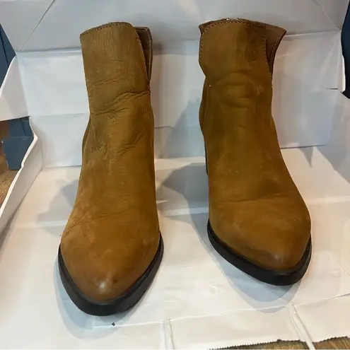 Stack heel approximately 3 inch bootie Tan zip back bootie Good used conditions. Wear and scuffi... Show more