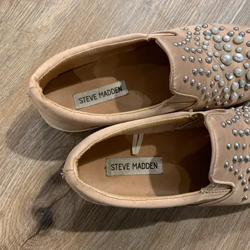Adorable pink slip on sneaker shoes with pearl and rhinestone studs by Steve Madden Worn, still hav... Show more