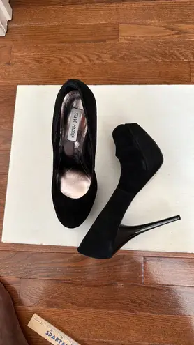 Steve Madden size 11 platform, stiletto heels, black suede, very classy and elegant true to size. 5... Show more