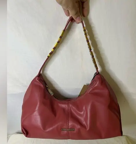 . Strap is same material as bag but it includes the name STEVE MAD DEN in gold colored letters. It... Show more