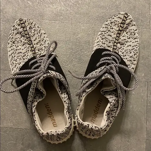 Cute Steve Madden tennis shoes size 8 women’s. In great condition! Black and grey “Yeezy” style.