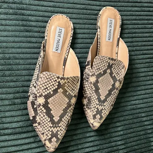 Steve Madden Flat Mule with Pointed Toe in Excellent Used Condition! Color: Cream Snake Skin Size: 7... Show more