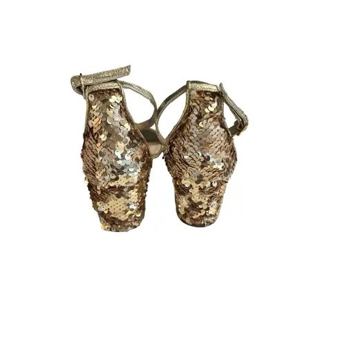 The Steve Madden Women's Carrson Sandal in gold with sequin accents and a block heel features a styl... Show more