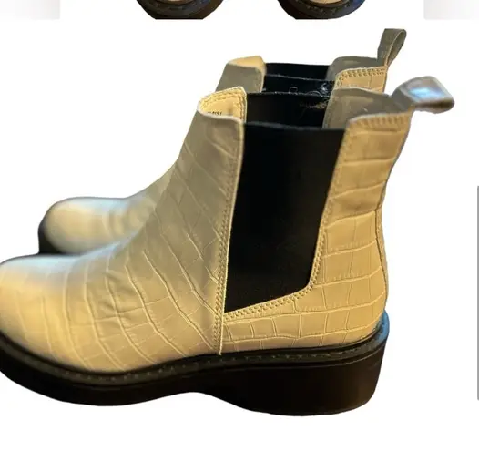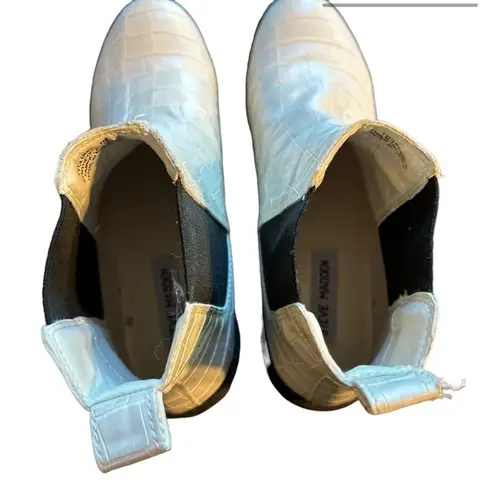 Keywords: Steve Madden, Tyclone, Chelsea boots, white boots, faux leather, crocodile pattern, ankle boots, slip-on boots, women's fashion, casual wear, everyday wear, fashion boots, pre-owned boots, stylish boots, comfortable boots.