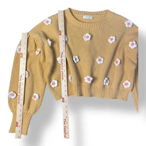 -Storia Pom Pom Daisy Knit Cropped Sweater Womens Size M Yellow Boho -Preowned in excellent conditi... Show more