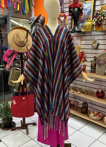 Mexican Vibrant and stylish Overflow, this multicolor poncho is perfect for adding a pop of color to your wardrobe. Ideal for layering, it features a comfortable fit and eye-catching stripes.