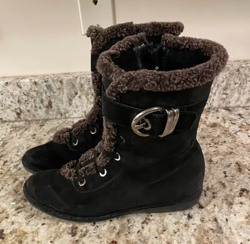Brand: Stuart Weitzman Style: Suede Sherpa Trim Side Zip Boots Color: Black Size: 9 Condition: Good... Show more