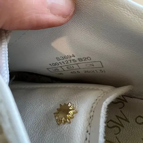 Size - Women's 10 Color- white Material- leather and canvas Brand- Stuart Weitzman Condition- minor... Show more