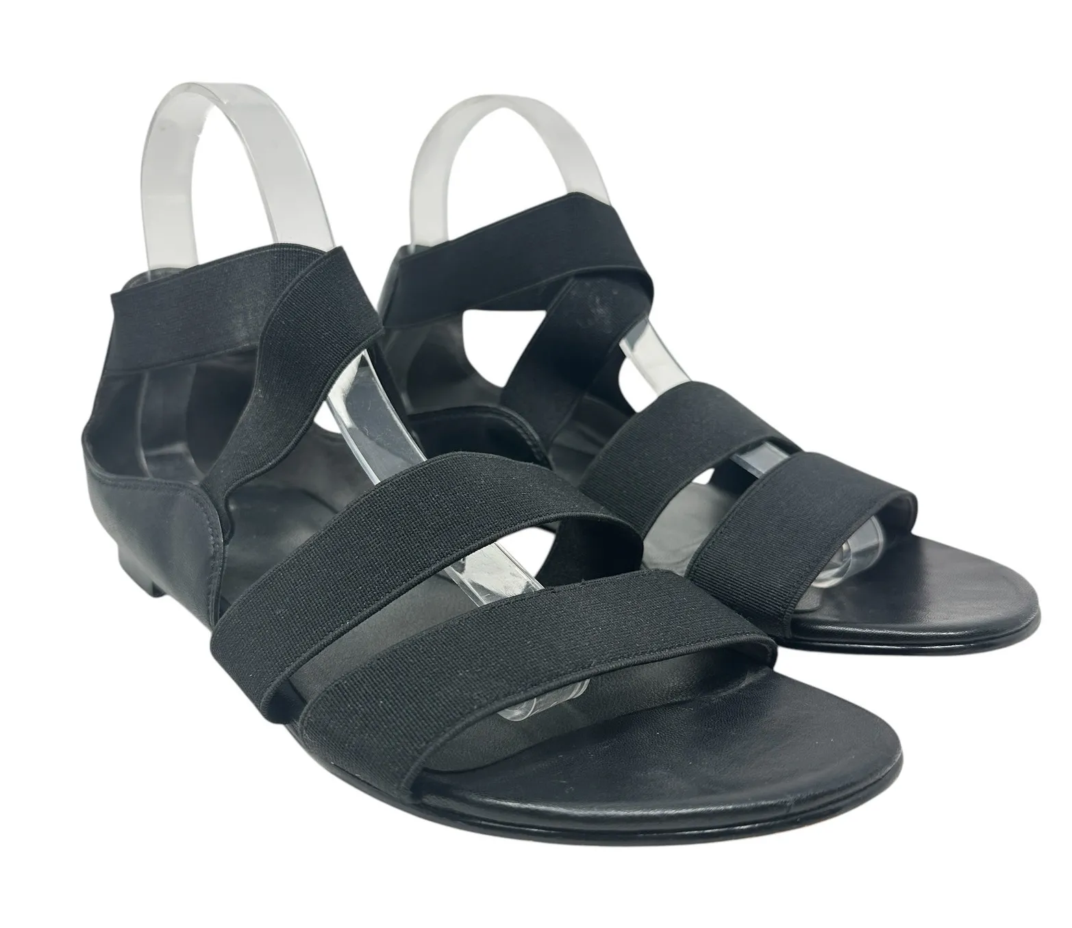 Stuart Weitzman Leather and Stretch Black Flat Gladiator Sandals Comfy stretch strap top and black... Show more