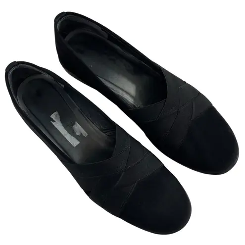 Stuart Weitzman Loafers Women’s Size 9.5 Black Suede Flat Platform Slip On Criss Cross detailing on... Show more