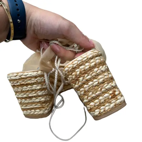 Y2K sheer ankle tie espadrille wedges Stuart Weitzman Square toe Champagne organza fabric toe box an... Show more