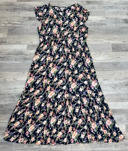 Studio West navy floral flutter sleeve maxi dress tiered elastic waist XL P45 - $34 - From Rebekah