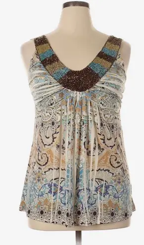 Style & co sleeveless multicolor paisley halter top with beautiful beaded embroidered neckline, plea... Show more