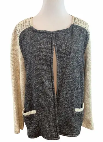 Soft cotton two tone cram and charcoal open front sweater from Style & Co Silver stud accents at sho... Show more