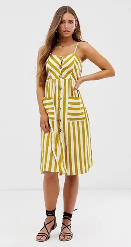 Style House large button through mustard striped mini dress adjustable straps Gold - $34 - From Melissa
