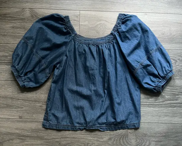 Sundance Blue Denim Puff Sleeve 100% Cotton Flowy Relaxed Fit Blouse Size M Fall Size M - $33 - From Shanna