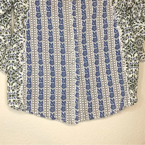 Sunday Saint Tropez Cotton Contrast Print Embroidered Hem Button Up Size S Blue - $79 - From Hannah