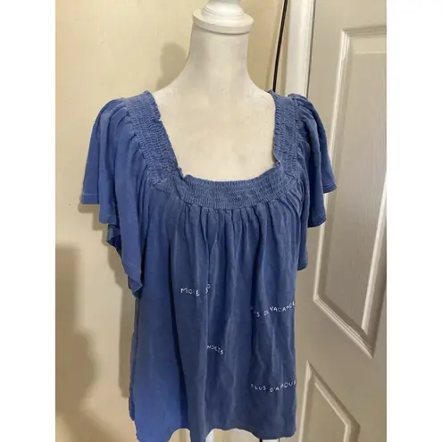Sundry Top Blouse Womens Smocked Elastic Neckline Short Flutter Sleeve Flowy M Blue Size M - $26 New With Tags - From Shayna