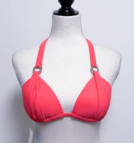 Swimwear Brand: Sunsets Size: Small (**please see photos for approximate measurements**) Style: Manufacturer color name is “melon” which is similar to a coral orange. Sliding triangle bikini top with halter tie neckline and back tie closure. Padded cups with diamond shaped push up pads along the bottom. Silver tone ring accents on straps. No underwire. Hand wash garment care. Condition: New with tags. Please be advised that the tags themselves show wear such as dents and discoloration. Comes from a smoke free home. Please feel free to ask any questions before purchase. I typically ship within 24 hours but please be advised that I don’t ship on Saturdays or Sundays. Thank you for understanding!