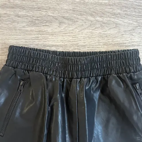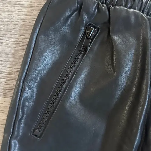 Sleek black track pants. Elastic waistband and cuffs. Comfortable fit. High rise Waist 12” Inseam... Show more