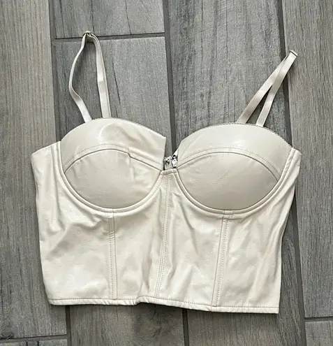 Chic cream bustier top. Structured design with adjustable straps. Perfect for a stylish look.