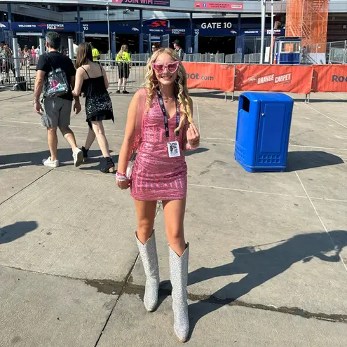 Stunning pink midi dress with shimmering sequins. Sleeveless design with a flattering V-neckline. Pe... Show more