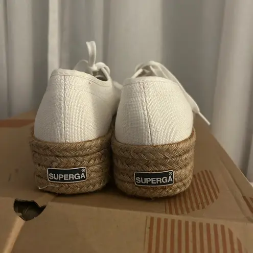 Elevate your look with Superga's white canvas platforms. Stylish and comfortable for any casual outi... Show more