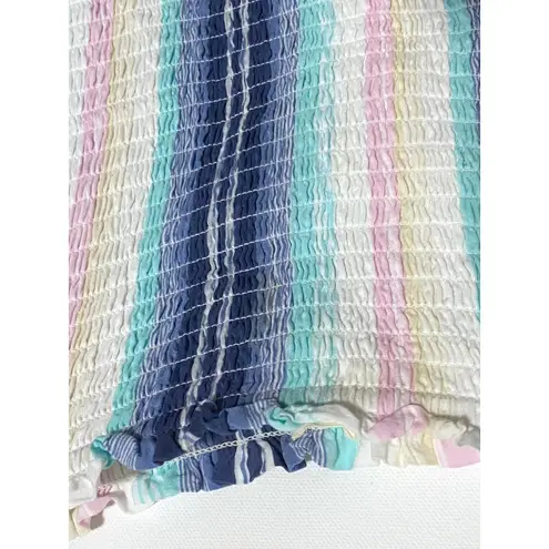 Condition: Gently used condition with no known flaws. Measurements: Pit to pit: 10.5 inches Length: 11.5 inches Style: Coastal, Beachy, Striped, Cropped, Smocked, Flowy, Boho, Hippie, Retro, Vacation, Cruise, Summer. Bin 100