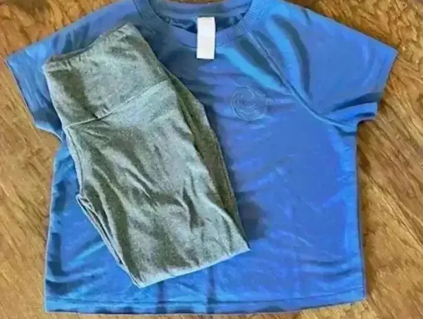 Sweet Treasures Blue Crop Sweatshirt, size XS w/ Eye Candy Gray Leggings, size M Size M - $15 - From Leslie