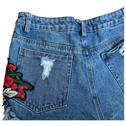 T-Shang Style. Womens med blue denim shorts with embroidered red rose appliqué - $40 - From Montana