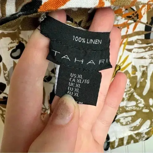 Tahari Linen Botanical Short Sleeve Top Wide Leg Pant Set Top Med Pants XL C48 Size undefined - $27 - From Rebekah