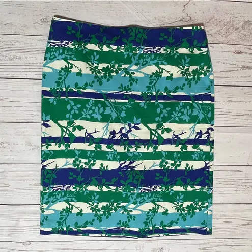 Talbots Blue Green All Over Leaf Print Stripe Pencil Skirt • Middle back zip • Back split as typical... Show more