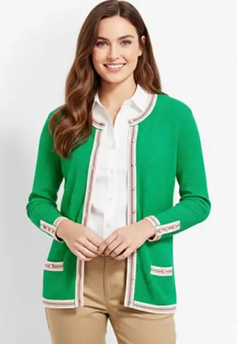 Talbots Cardigan Sweater Womens 1X Green Pink Stripe Trim Pearl Button Pockets Brand: Talbots Woman... Show more