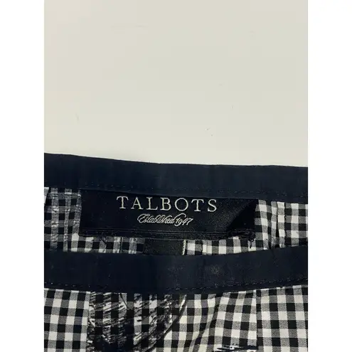 Talbots Collection wrap skirt in size 6 Petite. Crafted from 100% silk with a lightweight lining, this skirt combines classic black and white gingham with a whimsical butterfly overlay print. Finished with a wide solid black hem and side tie closure. Midi length with a flattering A-line silhouette. A versatile piece that balances timeless structure with a playful detail—perfect for work, elevated casual, or spring and summer occasions.