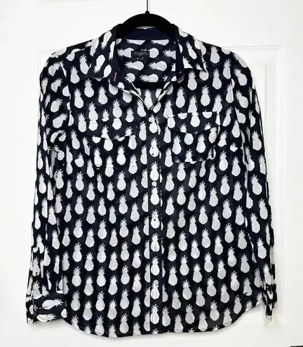 Black and white pineapple print all over with two front slip pockets. Button down collared top. *Si... Show more