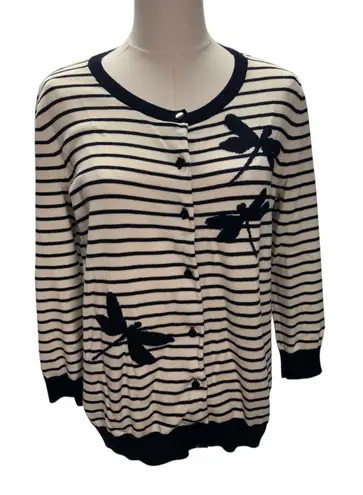 Talbots Crew Neck Striped Dragonfly 3/4 Sleeve Cardiagn Womens Large Ivory Navy Like new Ships sa... Show more