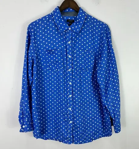 Talbots Linen Shirt 1XP Coastal Preppy Polka Dot Blue Button Front Workwear
