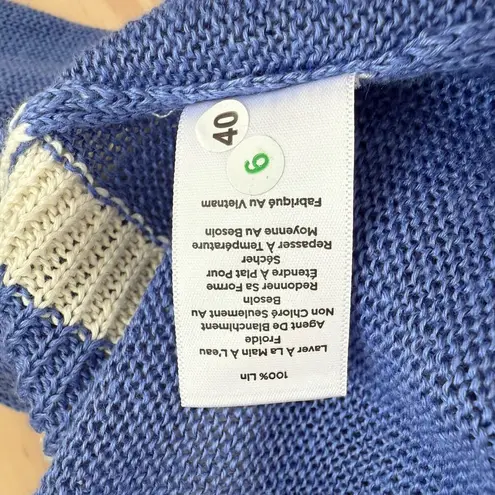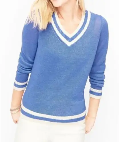 Talbots Linen V-Neck Sweater In Blue and White, Size Medium Features: V neckline, classic varsity s... Show more