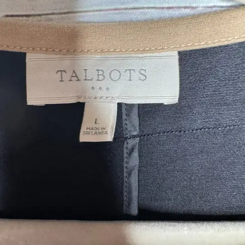 Talbots Women’s Large Open Front Knit Blazer Jacket Black Ivory Tan Trim Classic Polished Workwear... Show more