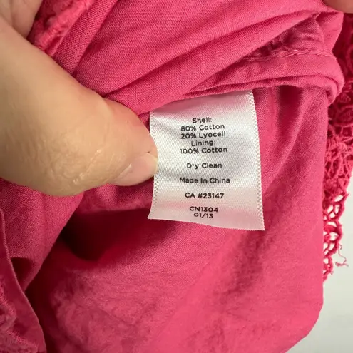 Talbots Petites bright pink lace sheath dress in size 10P. Fully lined with beautiful floral lace ov... Show more